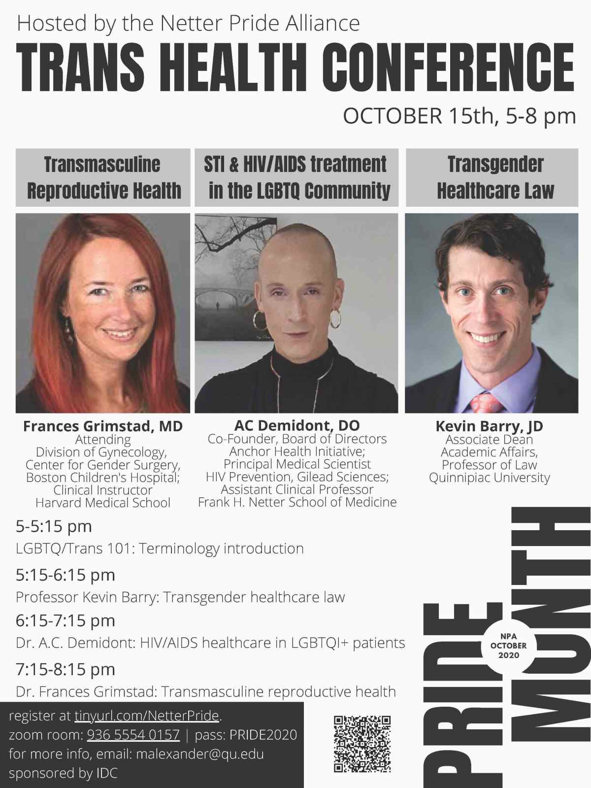 The Netter Pride Alliance is hosting our 2020  Transgender Healthcare Conference on Oct 15, 5-8pm, organized as a part of the October Pride Month. We are thrilled to welcome three speakers working at the forefront of advancing transgender healthcare and serving the LGBTQ+ community.
